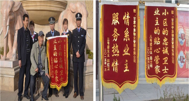 近日,甘肅中集幸福里物業(yè)服務(wù)部收到一封表揚信和一面錦旗,幸福里小區(qū)業(yè)主表揚小區(qū)的保安人員服務(wù)周到貼心,特送錦旗一面!