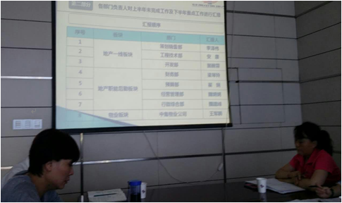 會上,房地產(chǎn)公司重點(diǎn)對上半年工作完成情況從企業(yè)經(jīng)濟(jì)發(fā)展、項(xiàng)目工程施工建設(shè)、物業(yè)經(jīng)營服務(wù)、內(nèi)部管理等方面進(jìn)行了分析總結(jié),并對下半年重點(diǎn)工作進(jìn)行了匯報,明確了下半年目標(biāo)任務(wù)。