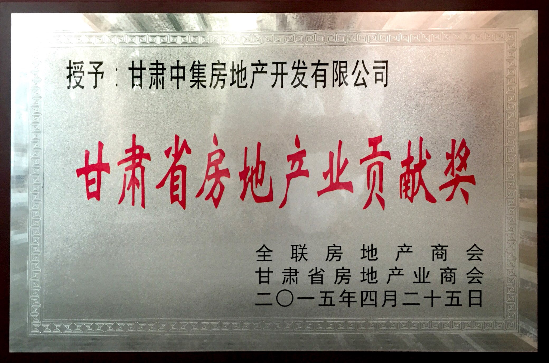 甘肅省房地產(chǎn)業(yè)貢獻(xiàn)獎