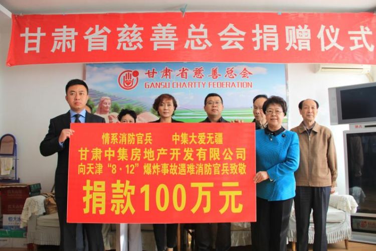 2015年8月12日23時30分,天津濱海新區(qū)國際物流中心發(fā)生重大爆炸火災事故,造成重大人員傷亡。甘肅中集房地產(chǎn)開發(fā)有限公司總經(jīng)理周啟濤獲悉后,決定為在本次事故中犧牲的消防官兵及其家屬捐款100萬元,用于幫助犧牲消防官兵家屬善后事宜的處理,以盡一份甘肅企業(yè)的慈善愛心。