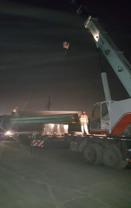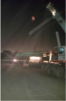 看,夜深人靜中,圖片中我不知道他們的姓名,看不到他們的面孔,但是我看到了:汽車吊上站著我們的員工,貨車上站著我們的員工,操作臺上有我們的員工,他們是那樣的不怕苦、不怕累,那樣的認(rèn)真、那樣的堅(jiān)守……