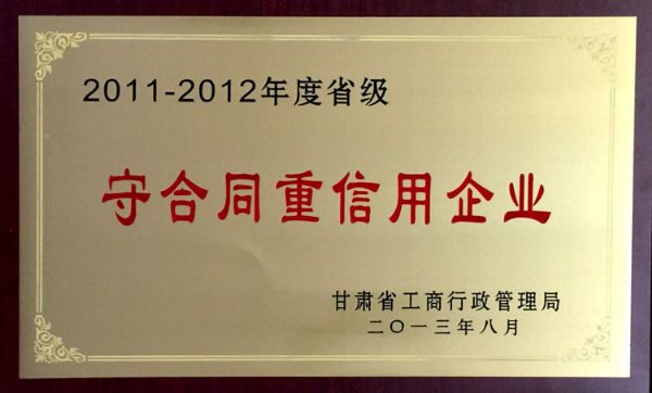 2013年8月,甘肅中集房地產(chǎn)開發(fā)有限公司榮獲“2011-2012年度省級守合同重信用企業(yè)”;