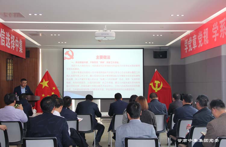 觀摩團一行首先聽取了甘肅中集集團公司的基本情況及集團公司黨委黨建的基本情況,隨后實地參觀了集團公司黨委黨員活動室、黨員會議室,問詢了企業(yè)黨建工作現(xiàn)狀和“三會一課”開展情況,并通過聽取匯報工作、翻閱資料等方式了解了集團黨委及各支部黨建工作。