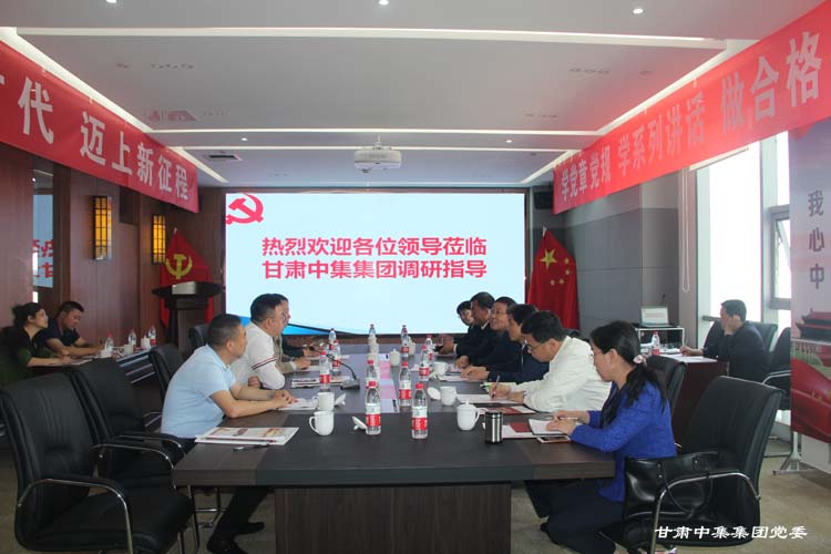 2019年5月21日上午,山西省非公經(jīng)濟(jì)組織和社會(huì)組織工委副書(shū)記、市場(chǎng)監(jiān)管局黨組成員、副局長(zhǎng)王國(guó)強(qiáng),山西省市場(chǎng)監(jiān)管局非公黨建處處長(zhǎng)朱志東一行6人,在省委非公經(jīng)濟(jì)組織和社會(huì)組織黨工委副書(shū)記、甘肅省市場(chǎng)監(jiān)管局黨組成員、副局長(zhǎng)肖建勝,甘肅省市場(chǎng)監(jiān)管局非公經(jīng)濟(jì)組織黨建工作處處長(zhǎng)劉玉圣,蘭州市市場(chǎng)監(jiān)督管理局黨組成員、副局長(zhǎng)李繼軍,安寧區(qū)市場(chǎng)監(jiān)督管理局黨組成員、副局長(zhǎng)蘇潤(rùn)彬陪同下蒞臨集團(tuán)黨委調(diào)研非公企業(yè)黨建工作,集團(tuán)公司黨委書(shū)記、董事長(zhǎng)周啟濤攜集團(tuán)公司黨委委員向參觀(guān)調(diào)研組匯報(bào)企業(yè)黨建工作。