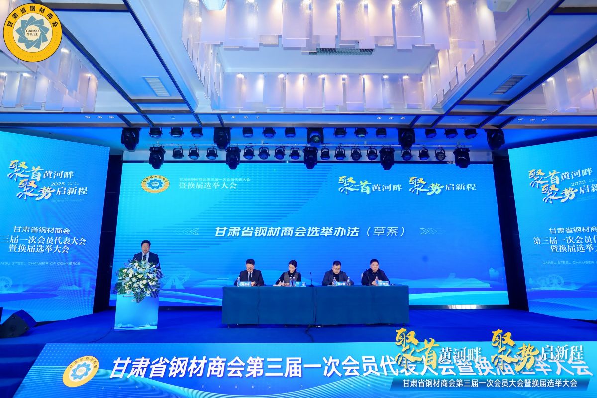 2025年3月24日,甘肅省鋼材商會在蘭州成功召開了第三屆一次會員代表大會暨換屆選舉大會,甘肅中集實(shí)業(yè)集團(tuán)有限公司黨委書記、董事長周啟濤榮耀當(dāng)選第三屆理事會會長;